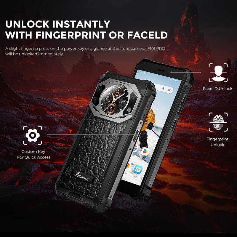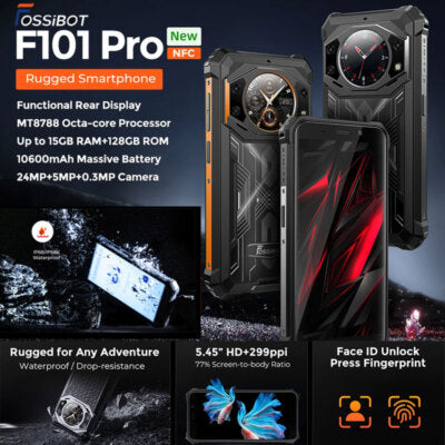 Meet the FOSSiBOT F101 Pro, the rugged smartphone that proves big things come in small packages. Upgraded from the classic F101, the "Pro" edition introduces an innovative Secondary Rear Display and a faster Octa-Core Processor, all while keeping the legendary 10,600mAh Battery that fans love.