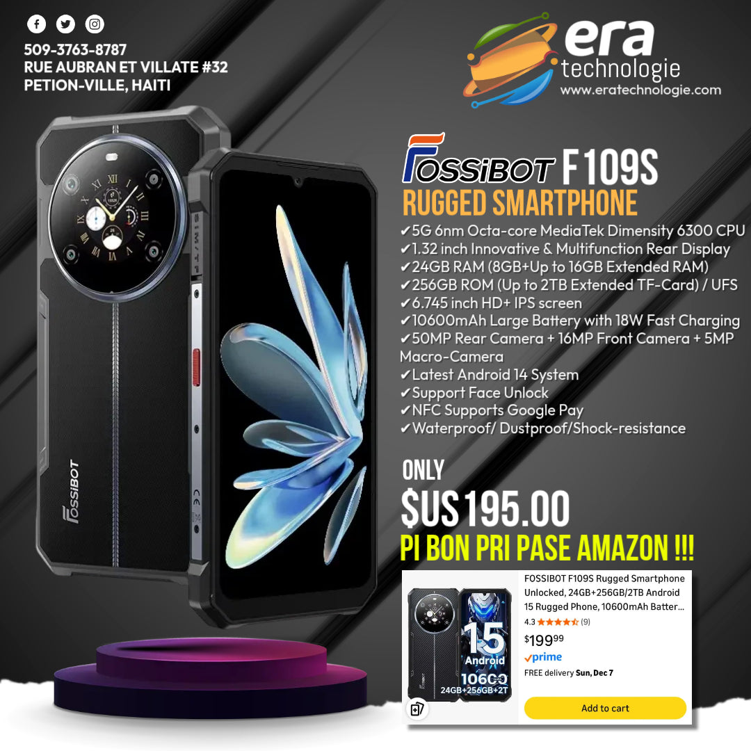 Meet the FOSSiBOT F109S, the rugged smartphone that brings premium innovation to everyone. Featuring a revolutionary 1.32" Rear Touch Display, a massive 10,600mAh Battery, and the newest Android 15 OS, this device is built for outdoor enthusiasts and workers who need modern tech without the flagship price tag.