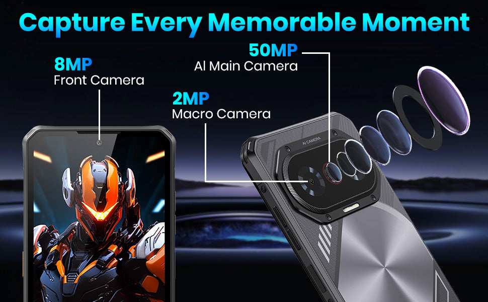 50MP Main Camera: Delivers crisp, high-resolution photos in any environment.