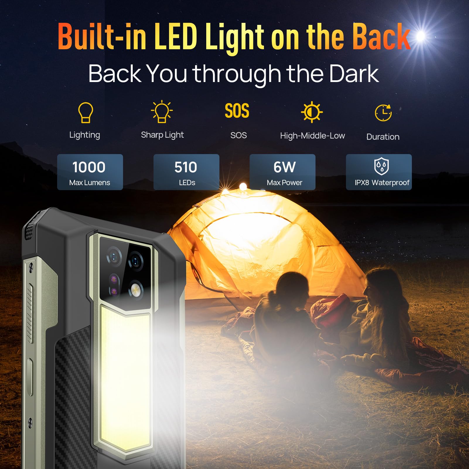 Leave your flashlight at home. The rear of the Armor 24 features a massive LED array with 510 lighting beads producing up to 1000 lumens of brightness.